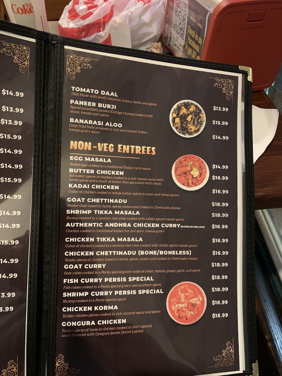 At Dasara (Persis) Indian Cuisine Menu, located in Delray Beach, Florida, you’re in for an authentic taste of India. The menu brings together a variety of traditional dishes, each bursting with bold, rich flavors that showcase the true essence of Indian cuisine. Whether you're craving a flavorful curry, sizzling tandoori specialties, or a hearty vegetarian dish, there’s something to satisfy every palate. From savory appetizers to decadent desserts, the dishes are crafted with the finest spices, offering a perfect balance of heat and sweetness. The menu not only offers familiar classics but also invites you to try something new, making it a wonderful place for both newcomers and seasoned lovers of Indian food.